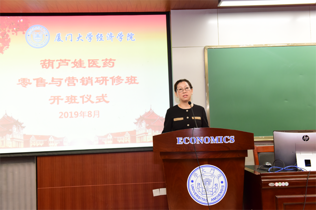 8月31日,金沙城医药零售与营销研修班开班仪式在厦门大学经济学院举行,为期8天的“厦大金沙城班”正式拉开帷幕。厦门大学经济学院继续教育中心主任廖景峰先生与金沙城药业集团董事长刘景萍女士分别在开班仪式上致辞,中国医药物资协会研究院执行院长代航先生担任本次研修班班主任并主持开班仪式。
